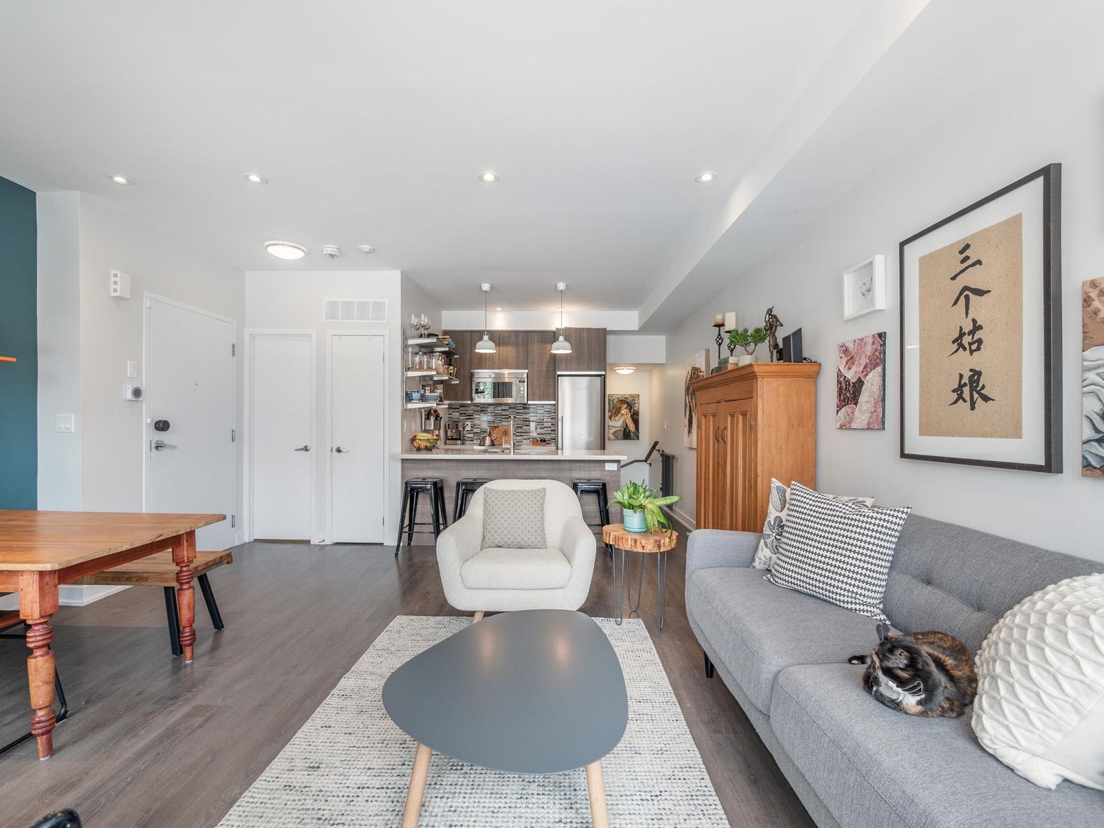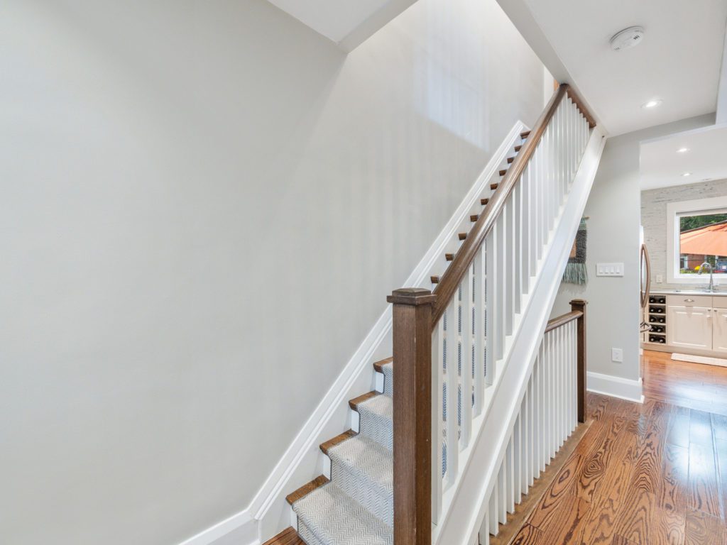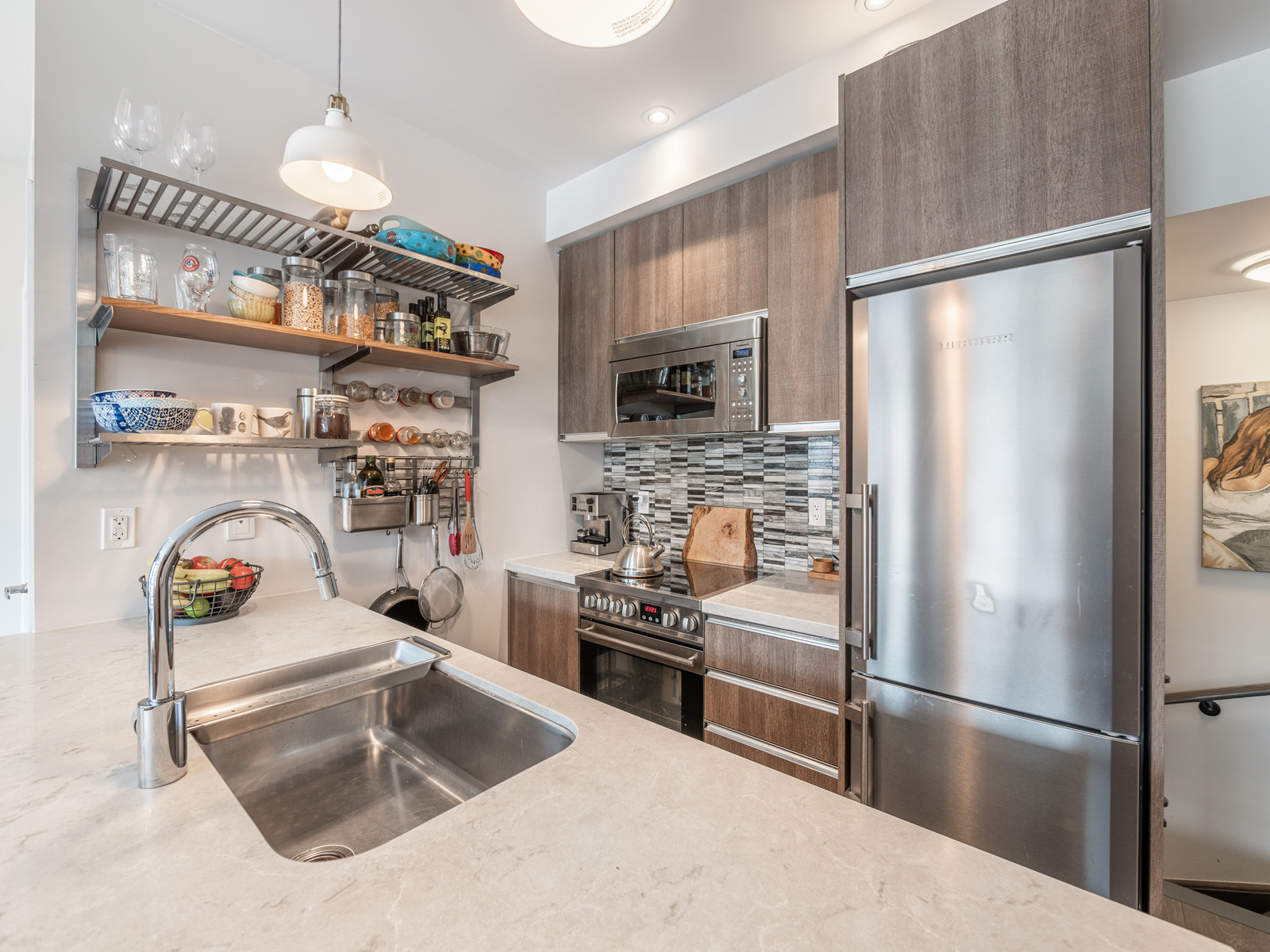 With approximately 2,800 sq. ft. of living space, plus another 1,000 sq. ft. in the basement, the property offers endless options for entertaining, working, and hosting family & friends. Luxurious finishings have been used throughout the home such as copper, glass, stainless steel & walnut. Wide plank white oak flooring coupled with a custom glass wraparound staircase spanning 4 storeys sets the tone of airiness in the home with windows on all sides. It is truly a stunning centrepiece statement in this home.