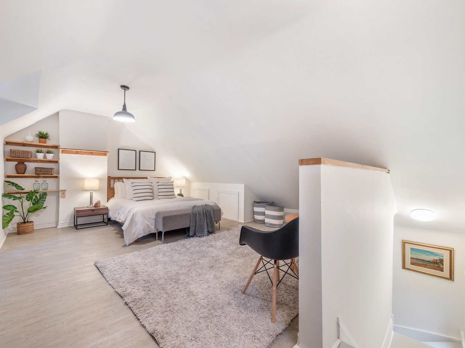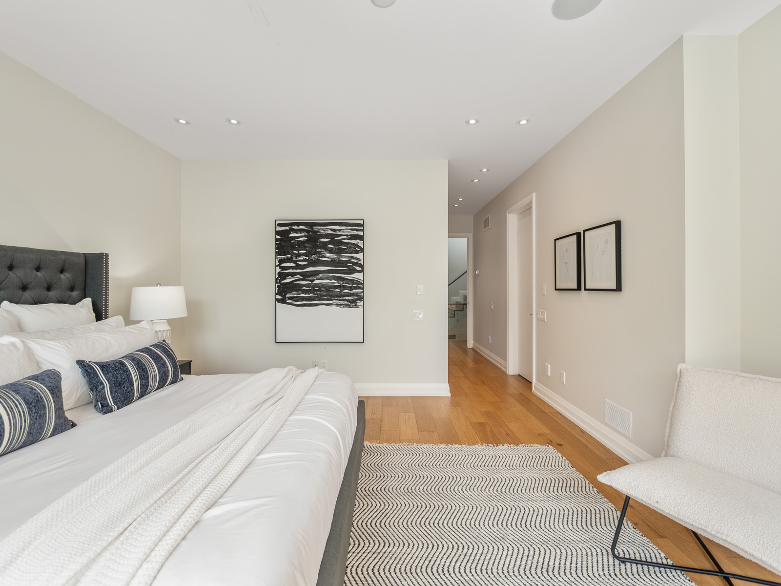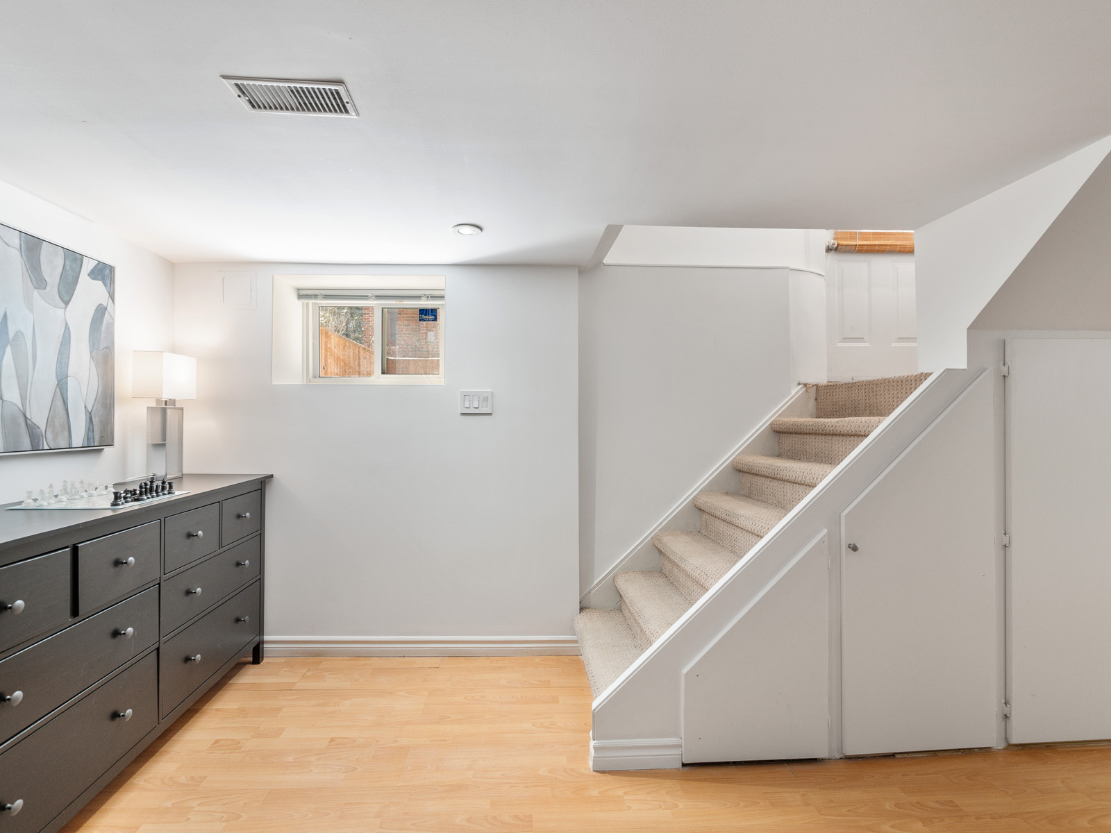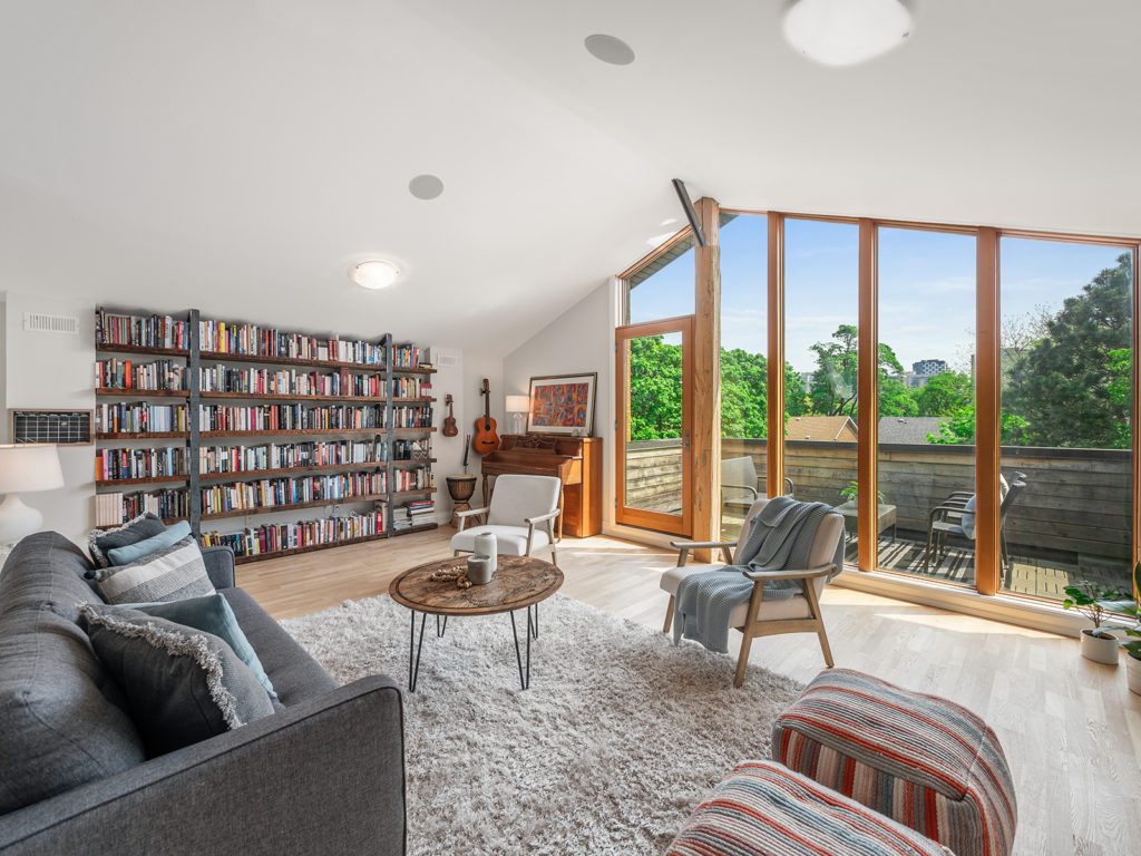 The third floor offers a private retreat with a cathedral ceiling reaching 11’ at its peak, floor-to-ceiling windows and a door leading to a private terrace. Flanking opposite walls are stunning, custom built-in bookshelves to house an extensive book collection. A walk-in closet & 3 piece bathroom finish off this floor. With minimal renovations, the 3rd floor can easily be converted into a magnificent bedroom space.