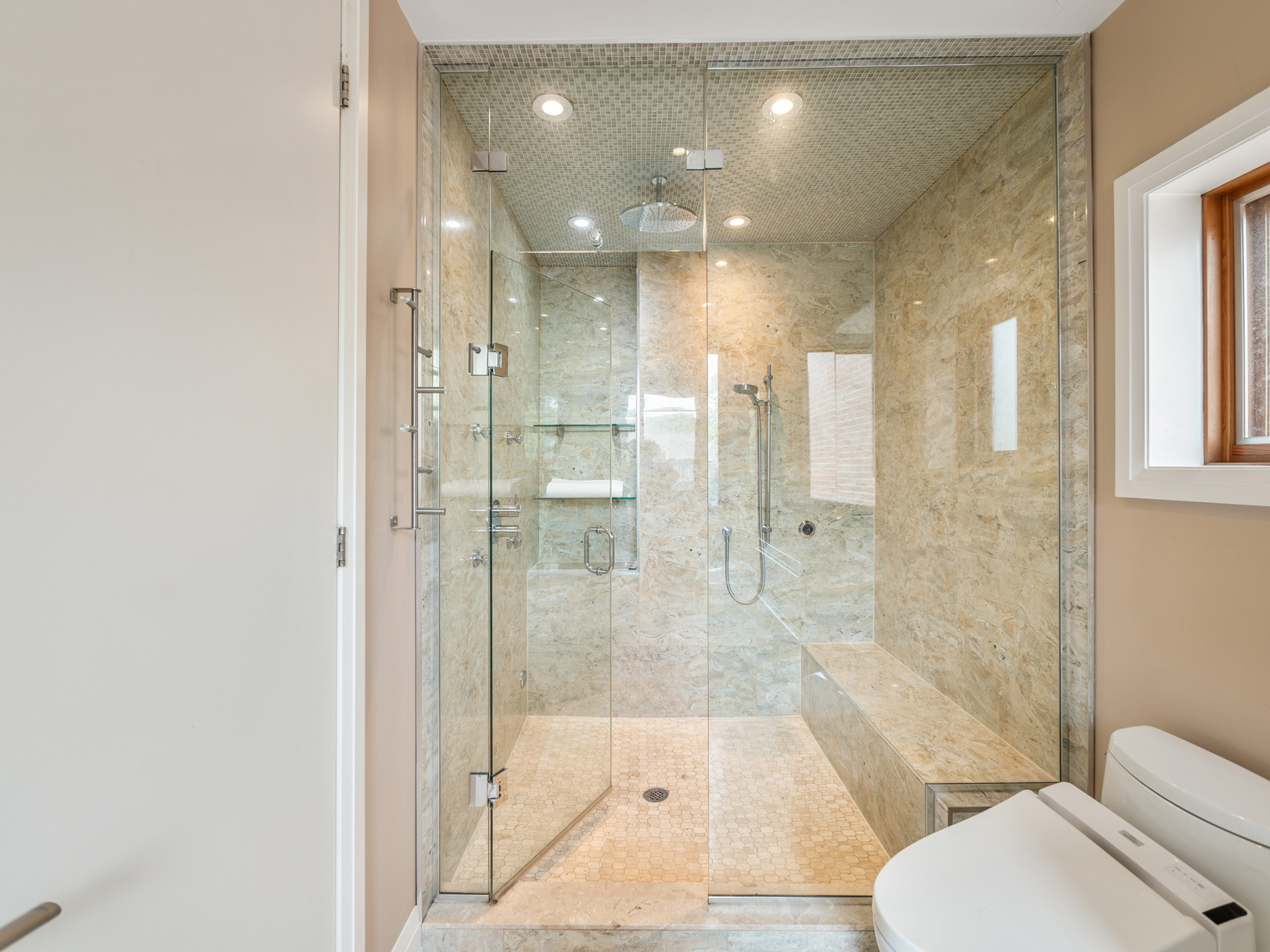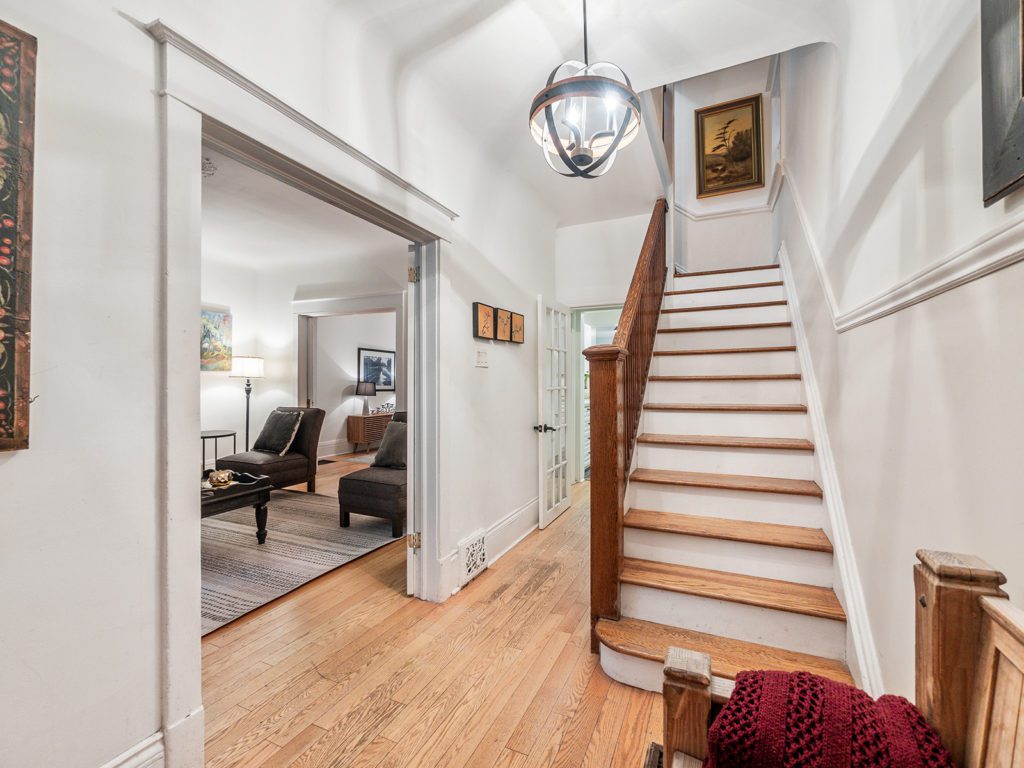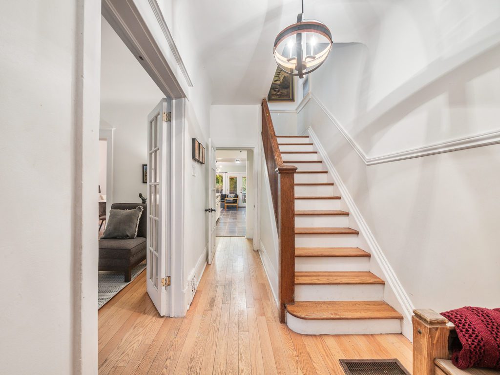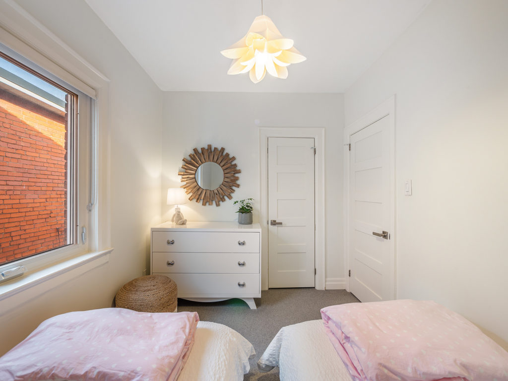 The third floor offers a private retreat with a cathedral ceiling reaching 11’ at its peak, floor-to-ceiling windows and a door leading to a private terrace. Flanking opposite walls are stunning, custom built-in bookshelves to house an extensive book collection. A walk-in closet & 3 piece bathroom finish off this floor. With minimal renovations, the 3rd floor can easily be converted into a magnificent bedroom space.