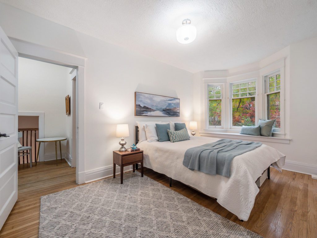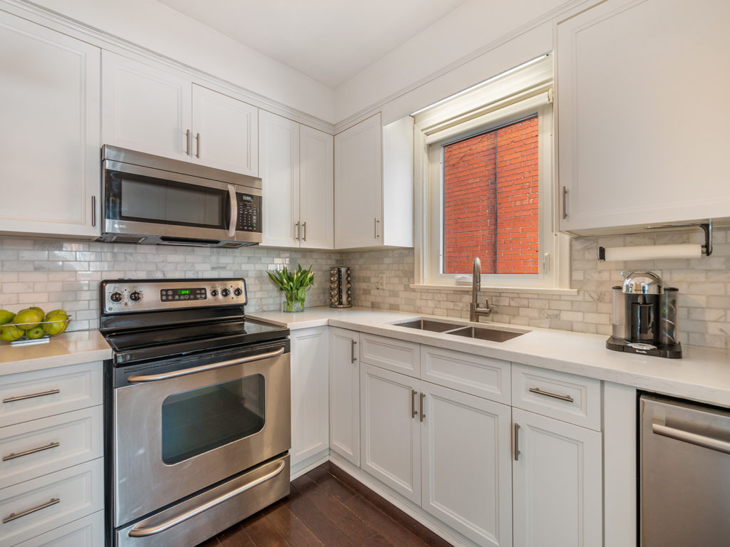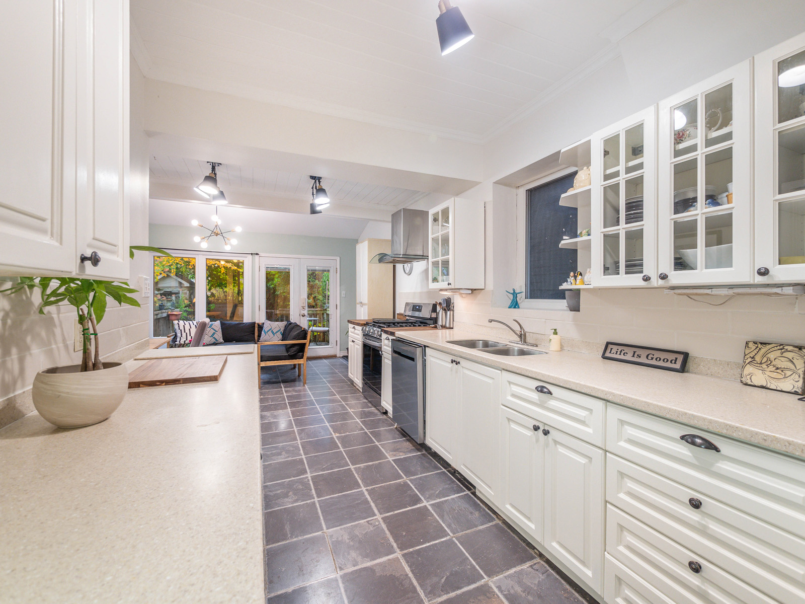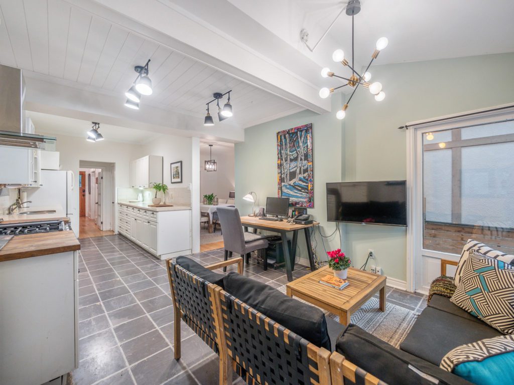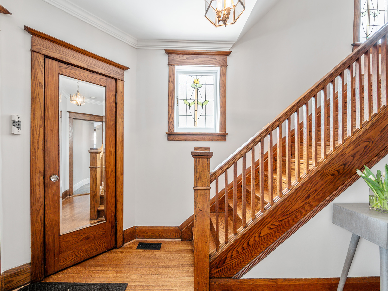 The third floor offers a private retreat with a cathedral ceiling reaching 11’ at its peak, floor-to-ceiling windows and a door leading to a private terrace. Flanking opposite walls are stunning, custom built-in bookshelves to house an extensive book collection. A walk-in closet & 3 piece bathroom finish off this floor. With minimal renovations, the 3rd floor can easily be converted into a magnificent bedroom space.