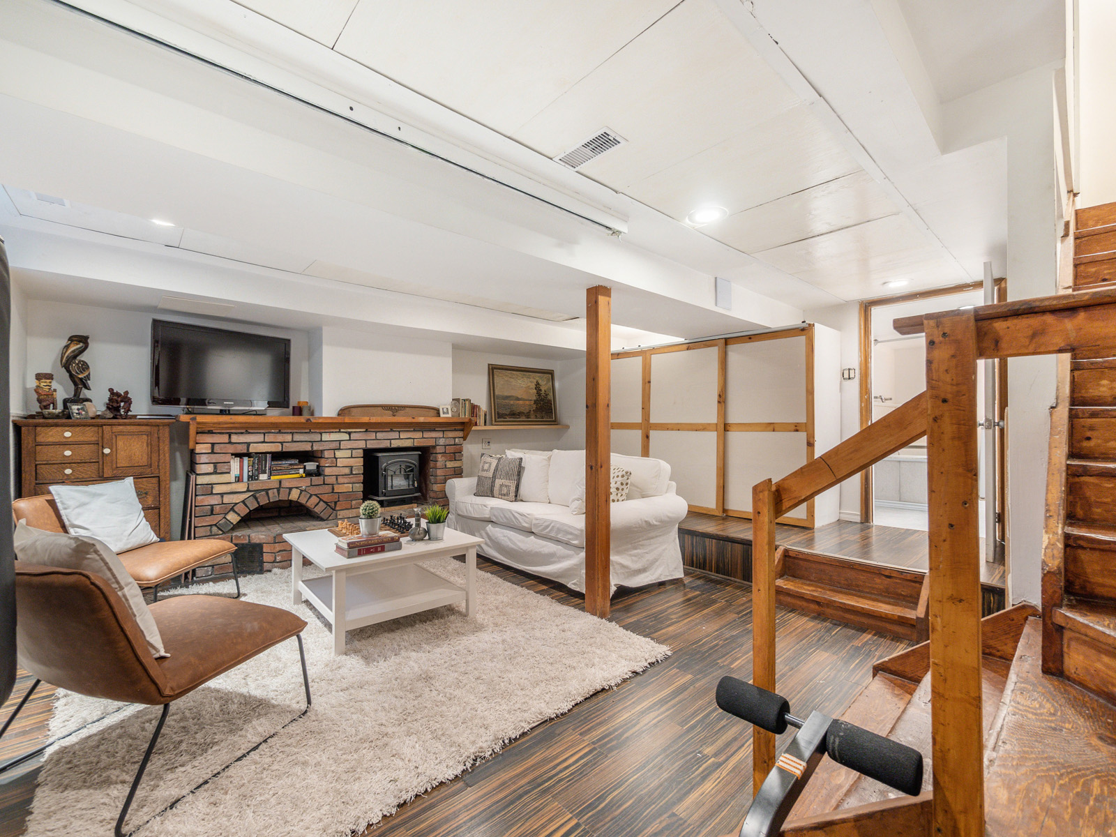 The large basement recreation room is completely open plan. Above grade windows allow for natural lighting. Enjoy movies on a large screen using a ceiling mounted projector. Beyond the Rec. Room is a bedroom/office and media room/gym plus a 3 piece newly finished bathroom. There is plenty of storage on this level, including a walk-in pantry, a tool room, storage room, and cold room.