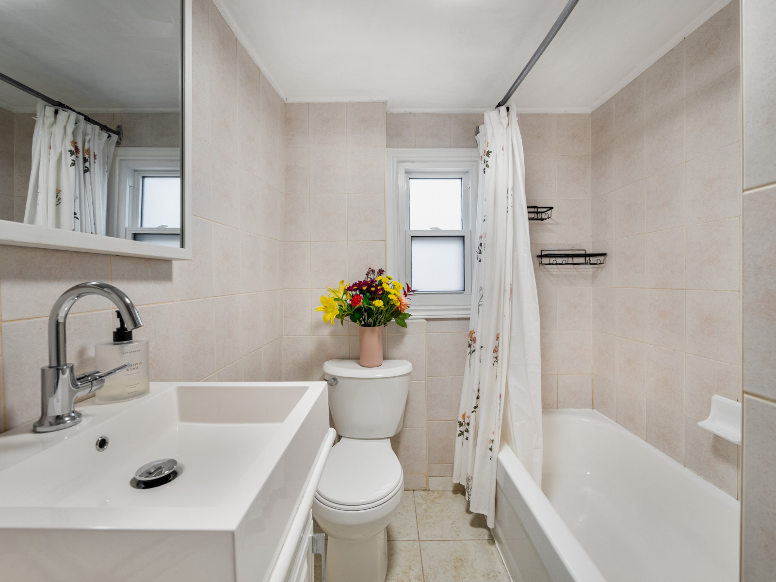 Upstairs, the sun-filled primary bedroom faces east and features floor-to-ceiling closets, while the two additional bedrooms offer excellent proportions and versatility for children, guests, or a home office. A four-piece family bathroom completes this level.