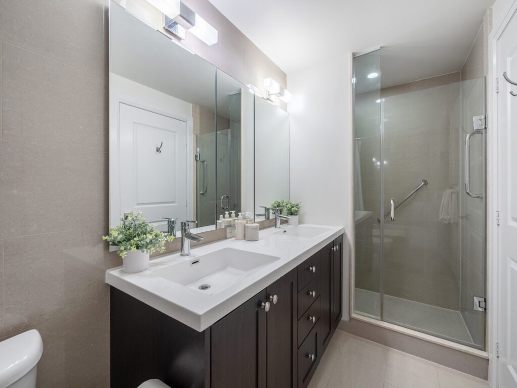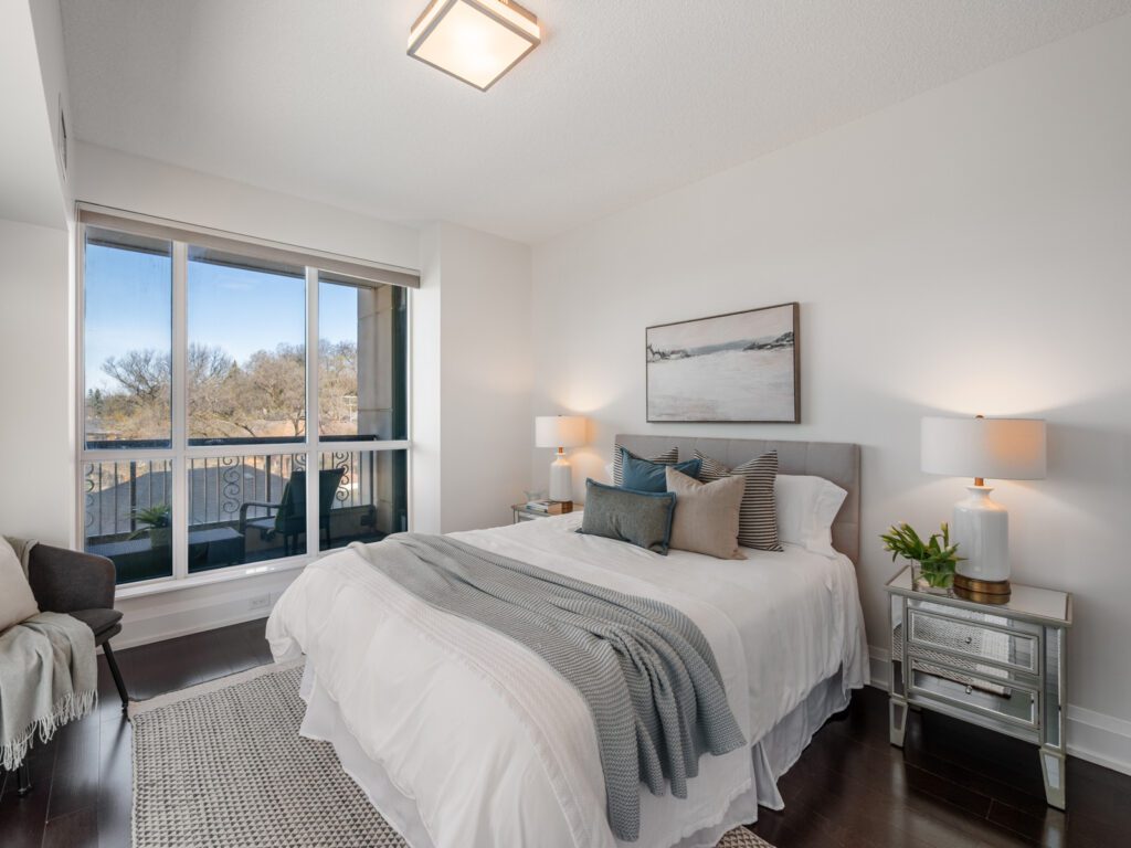 The primary bedroom is a standout, with corner windows on two sides, a walk-in closet, and a beautifully appointed five piece ensuite. The second bedroom offers flexibility as a guest room, office, or den, complemented by a well-designed four-piece bathroom.