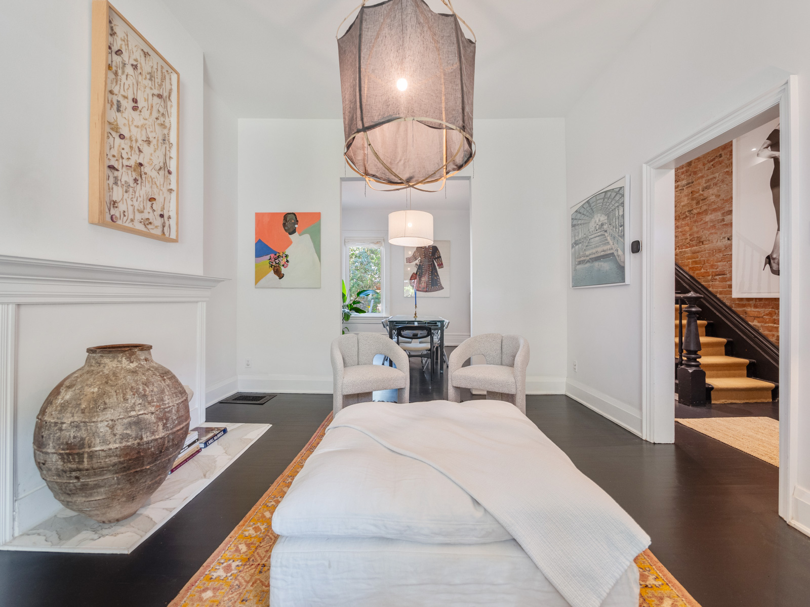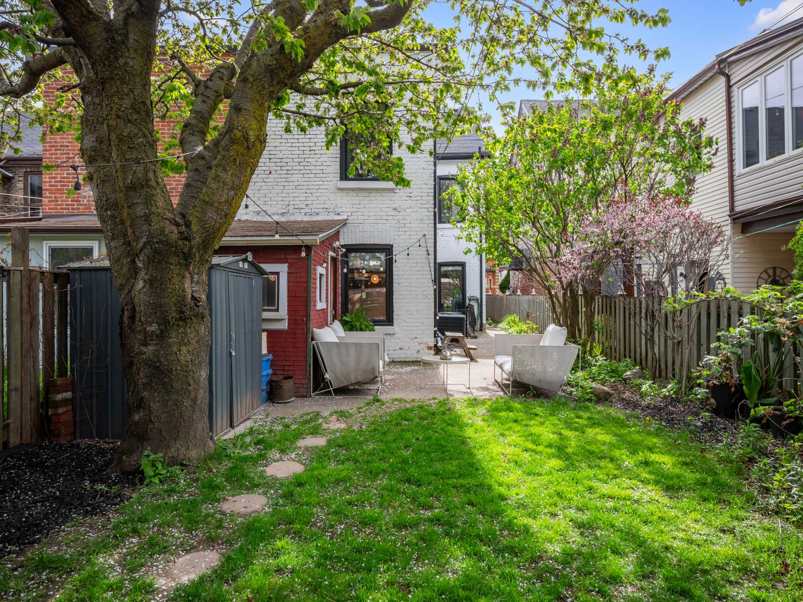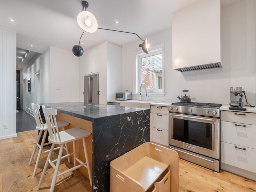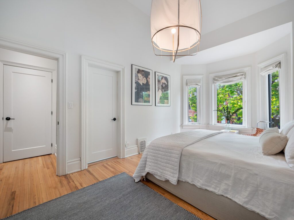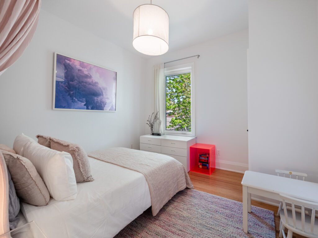 137 Dovercourt Road is located in Toronto, in the trendy neighbourhood of Trinity-Bellwoods, near Queen West. This property is a larger semi-detached home situated on a 24ft wide lot. It also has an expansive, private backyard adorned with mature trees, 1 car parking off a laneway and offers potential for a laneway/ garden suite. The home was fully renovated in 2017 resulting in a gorgeous 4+2 bedroom, 5 bathroom home nestled in the sought-after Givins Shaw school zone. The home features hardwood flooring throughout and large windows to allow an abundance of light. With impressive soaring ceilings and almost 2,500 sq. ft. of living space, the home has been tastefully transformed into a highly functional urban dwelling (i.e. 2nd floor laundry). Many original features have been restored and complemented with stunning design choices, including a beautiful chef’s kitchen with a marble centre island, exposed brick wall, and a primary ensuite with vintage vibes.