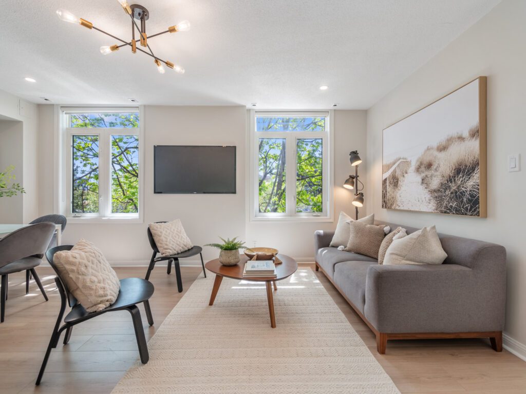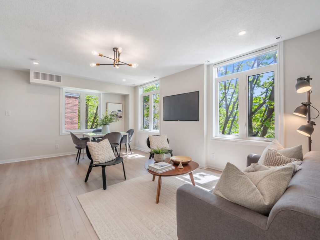 Boasting 1050 square feet, no detail has been spared in this bright and spacious unit! Freshly painted with all-new laminate flooring throughout for both durability and aesthetic appeal and new plush berber carpeting on all staircases. Stunning main floor powder room and a gorgeous spa inspired main bathroom offering convenience and comfort for residents and guests alike.