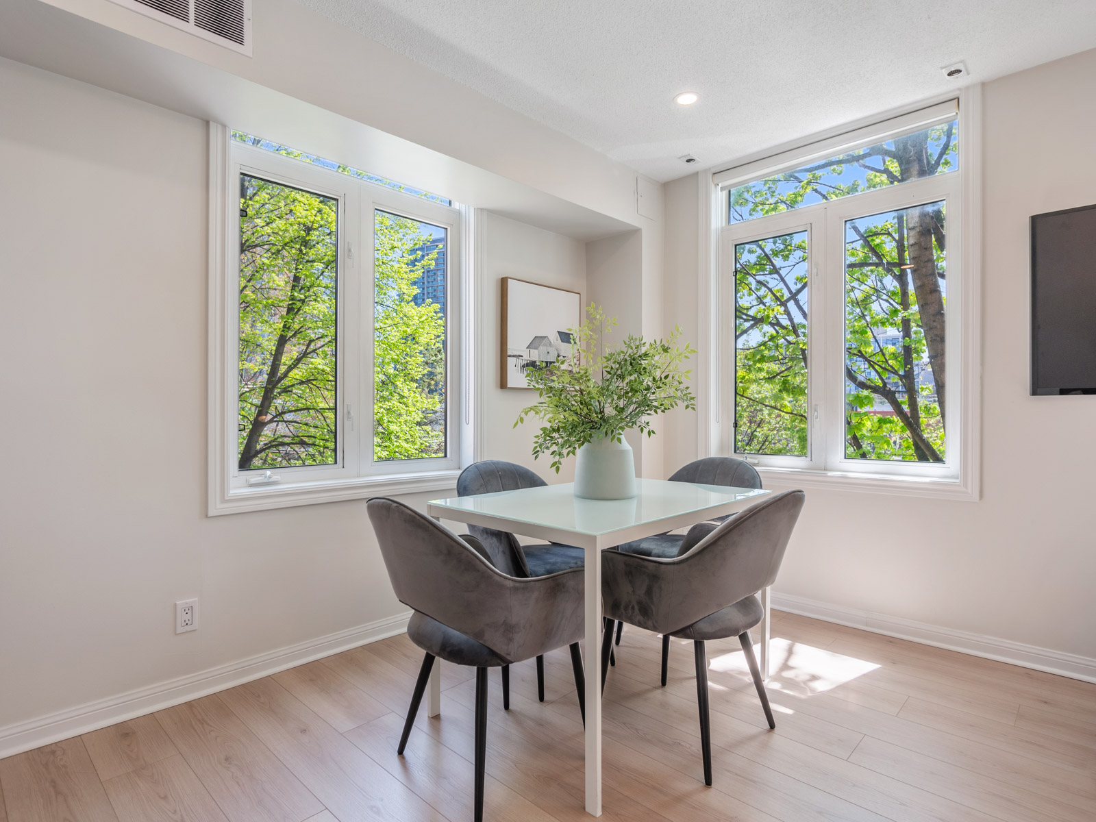 Embrace outdoor living at its finest on the private rooftop terrace, adorned with new composite decking and offering panoramic views and sight lines to the CN Tower. Whether you’re hosting a barbecue with friends or unwinding with a glass of wine as the sun sets, this rooftop oasis is the epitome of urban tranquility. With the added convenience of a parking spot included, you’ll enjoy seamless access to all that this dynamic neighborhood has to offer, making this condo townhouse the ultimate urban sanctuary.