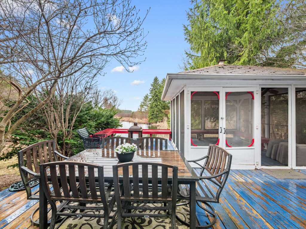 The inviting lower-level family room features a cozy wood-burning fireplace—perfect for those chilly evenings—and provides direct access to the outdoor deck, complete with a screened-in gazebo. Enjoy your morning coffee while overlooking the tranquil pond, surrounded by the calming sounds of nature.