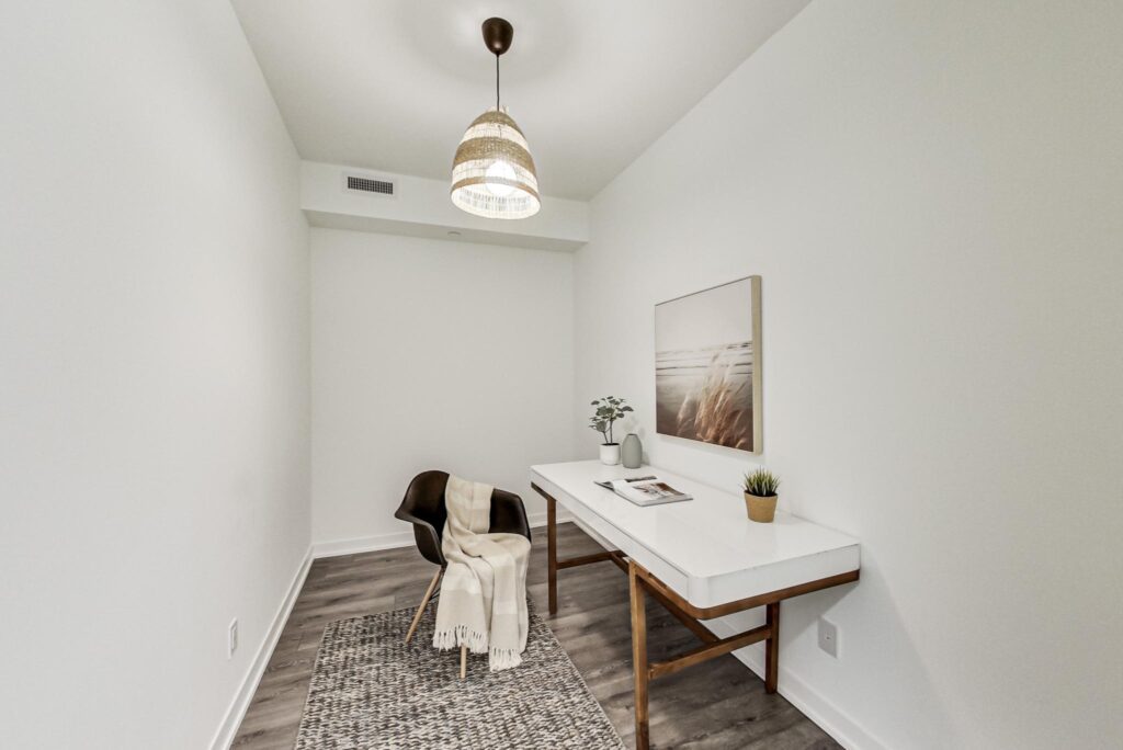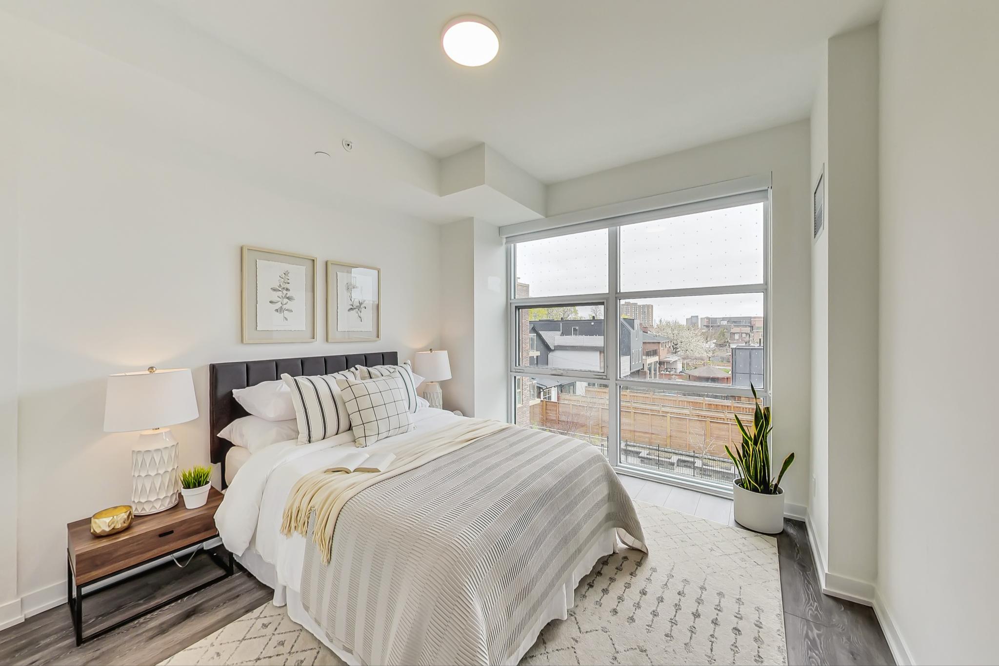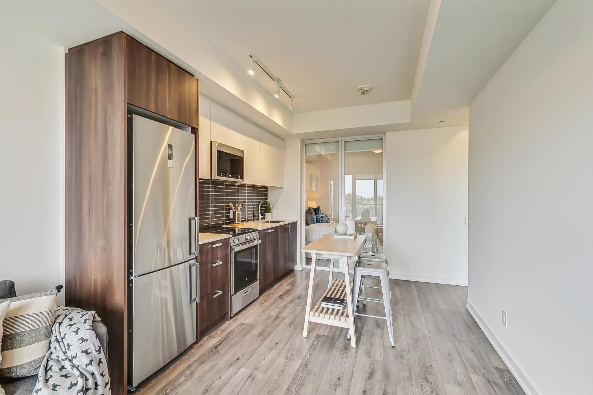 Welcome to this beautiful suite in Scout, a new modern community on West St. Clair West. This almost-new unit offers two bedrooms plus a generous den. Over 840 square feet of interior living space with upgraded vinyl flooring throughout. Enjoy stainless steel appliances and in suite laundry. Comfortable, bright primary bedroom with 3-piece ensuite. Walk out to your south facing, quiet 46 square foot balcony overlooking the neighbourhood. Electric Vehicle (EV) charger installed in owned parking space. Locker included.