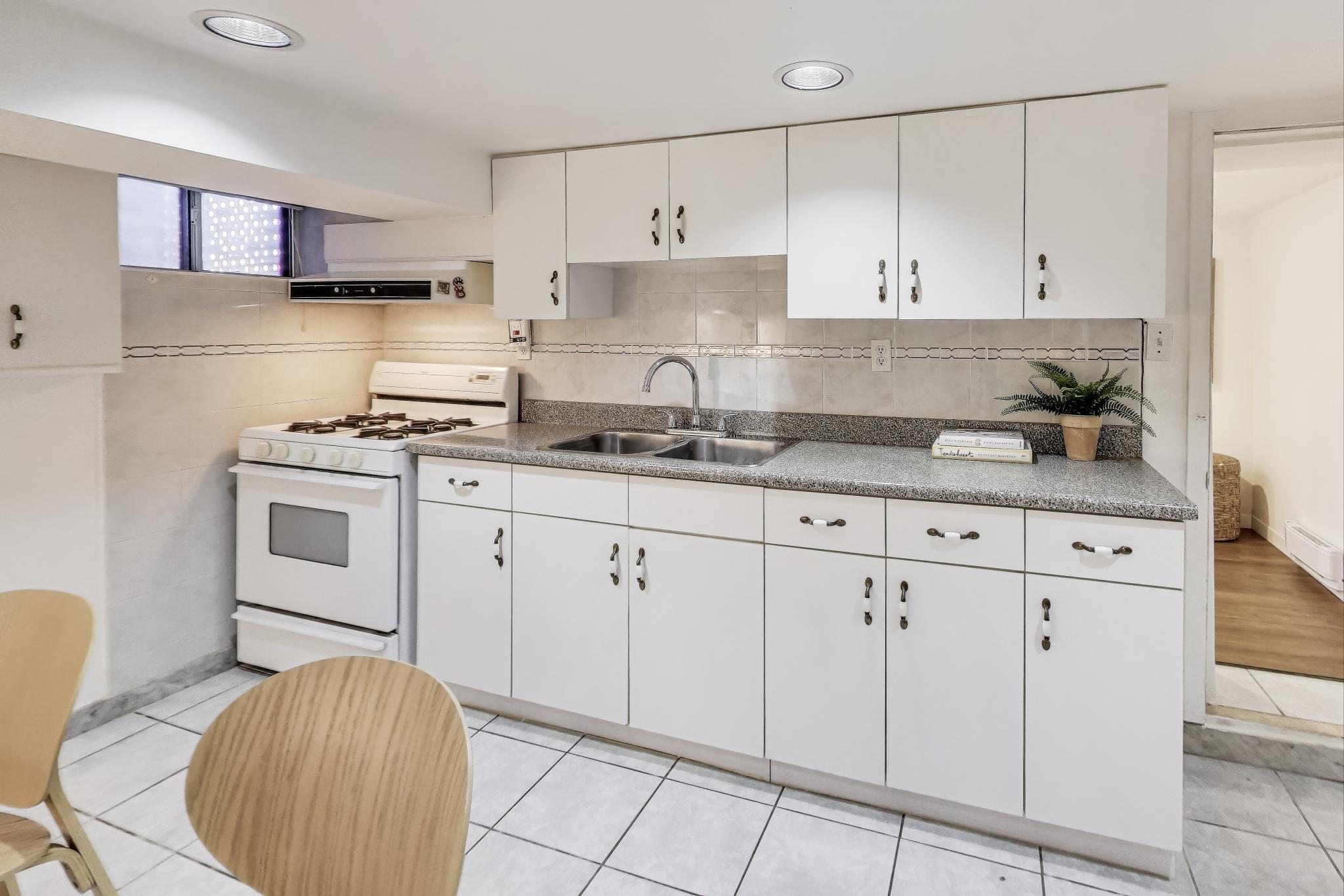 On the second floor you will find 3 bedrooms, a laundry closet & and a newly renovated 4 piece bathroom. Enjoy the morning sun from the primary bedroom which has plenty of storage space with wall-to-wall IKEA closets. The rear bedroom features floor-to-ceiling cabinetry. 1st & 2nd floor offer 1,240 sq. ft of living space. The 744 sq. ft. basement is fully finished with above-grade windows, and tiled for low maintenance. A kitchen, laundry, living room, bedroom and 3 piece bathroom function well as a one bedroom apartment, which is currently tenanted (rent $1,400/month). Access to the unit is via a secure enclosed entry from the rear of the property which has a skylight. The backyard has been hardscaped for low maintenance and is lined with planter beds plus an outdoor gazebo. You will find easy access to the double-car brick garage via backyard. (Garage rents for $500/month) Roof was replaced in April 2023. This home offers central AC, laneway access, with the potential to build an 1,180 sq. ft. laneway home. (See laneway report). A Home Inspection report is also available.