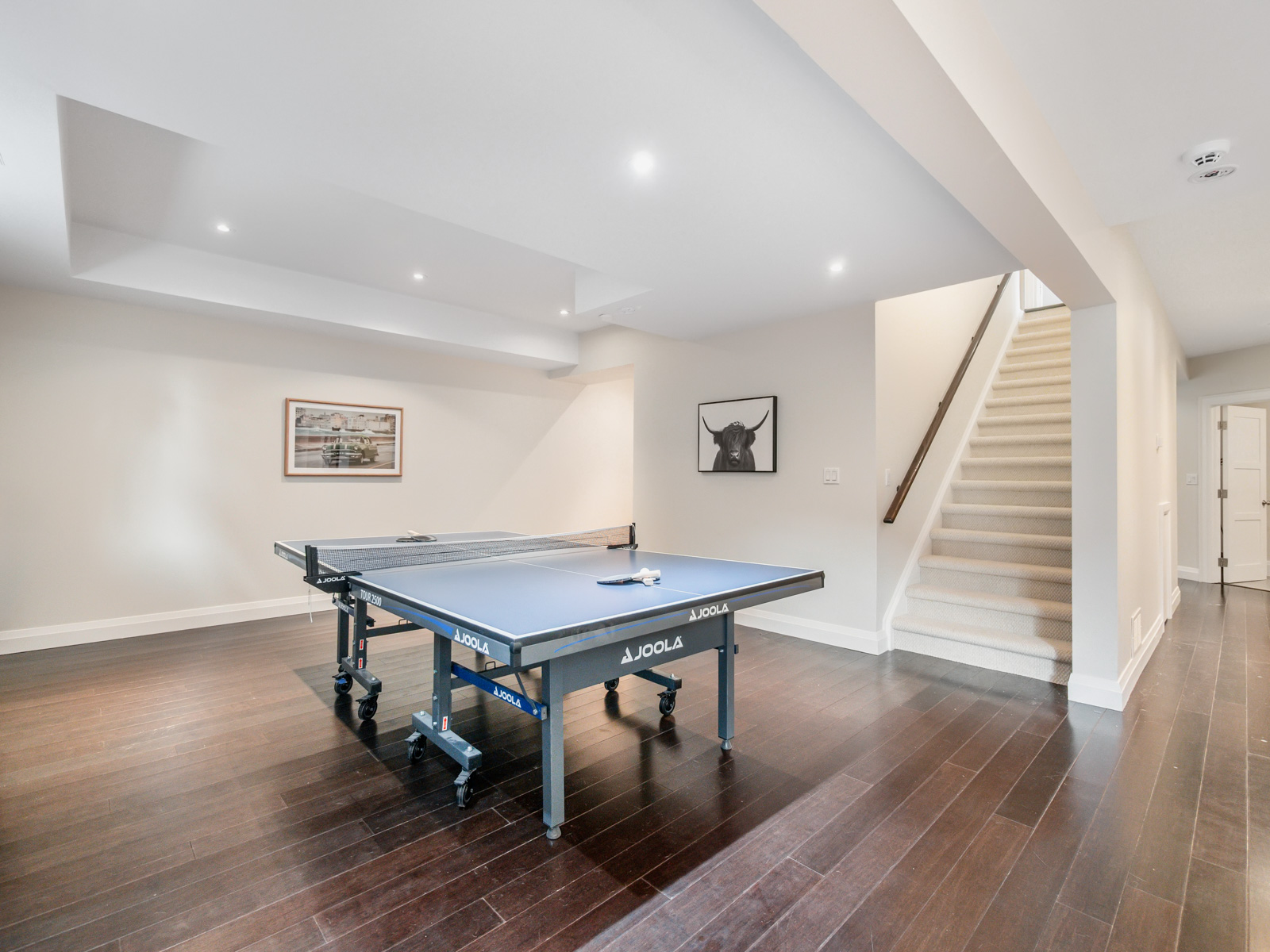 The spacious lower level adds incredible family space, with radiant in-floor heating, rich bamboo flooring, a third gas fireplace, built-in shelving, and a sprawling recreation area that can easily serve as a media room, games area, or home gym. There’s also a cozy play nook for little ones, ample storage throughout, a convenient 2-piece bathroom, and a separate entrance with its own staircase—ideal for extended family, guests, or future income potential.