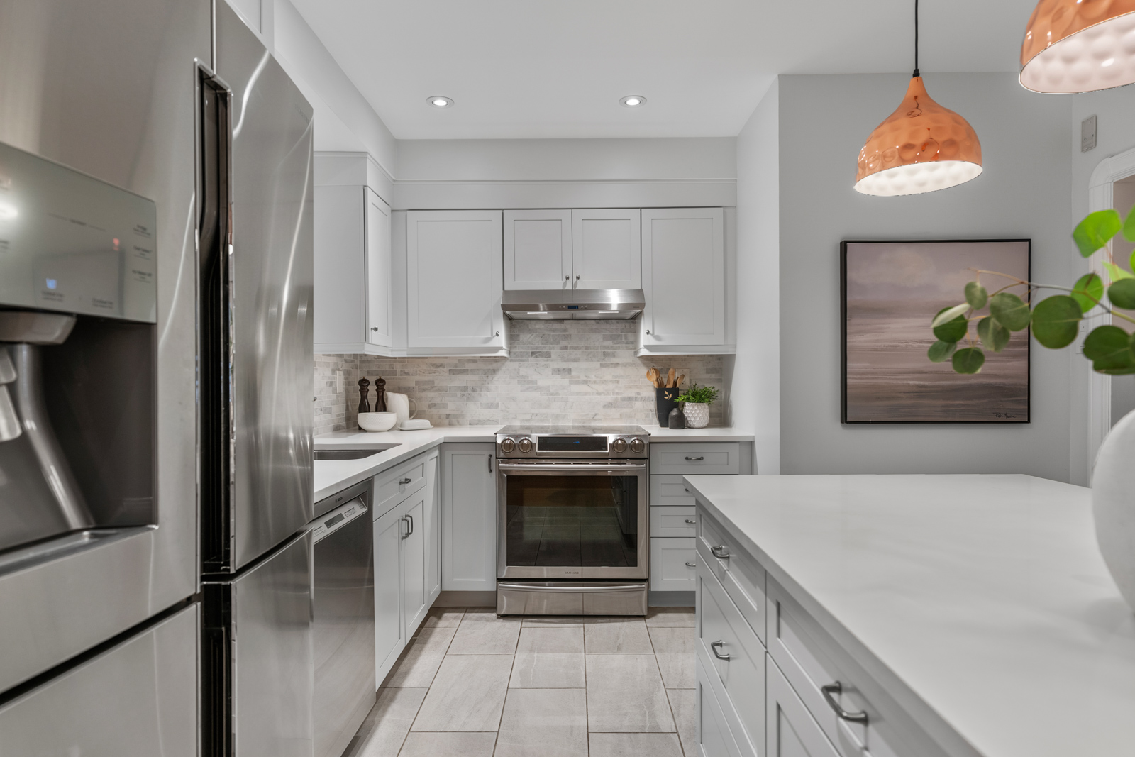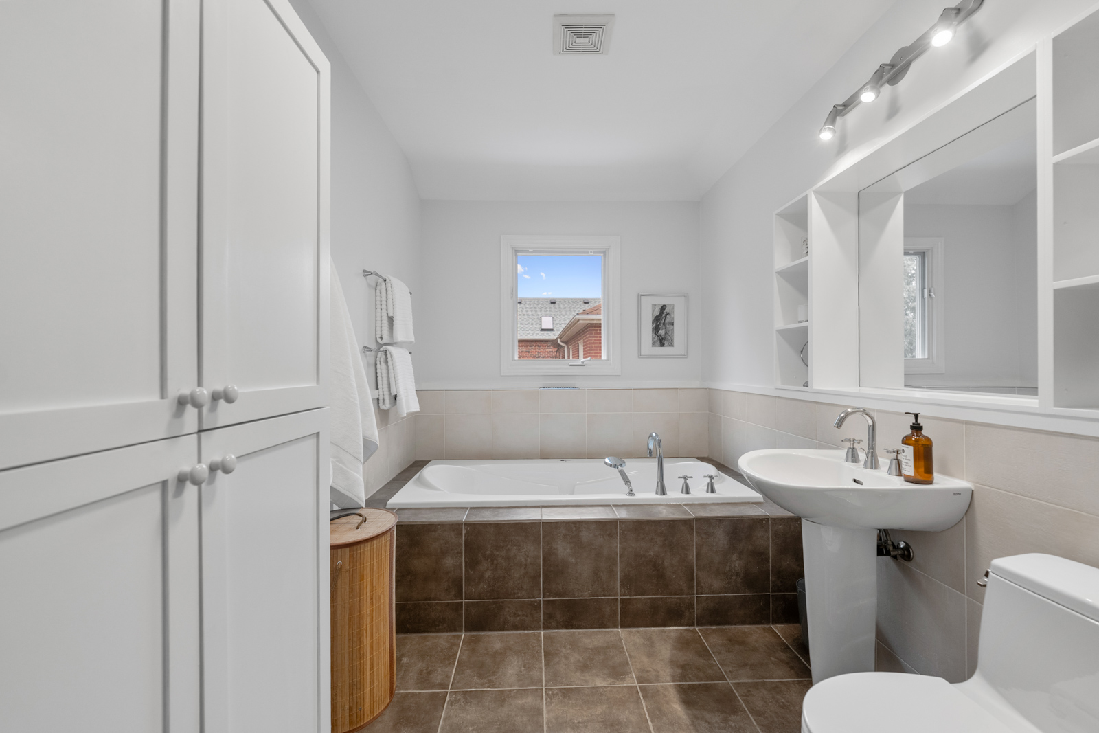 The generous width of the home is immediately apparent, creating a bright, comfortable flow that’s hard to find even in a detached home. Upstairs, a huge primary suite serves as a true retreat, with ample closet space, room for a king bed and separate sitting area and a 4-piece ensuite bathroom. A walk-out balcony extends the living space outdoors, offering a private spot for morning coffee or evening unwinding.