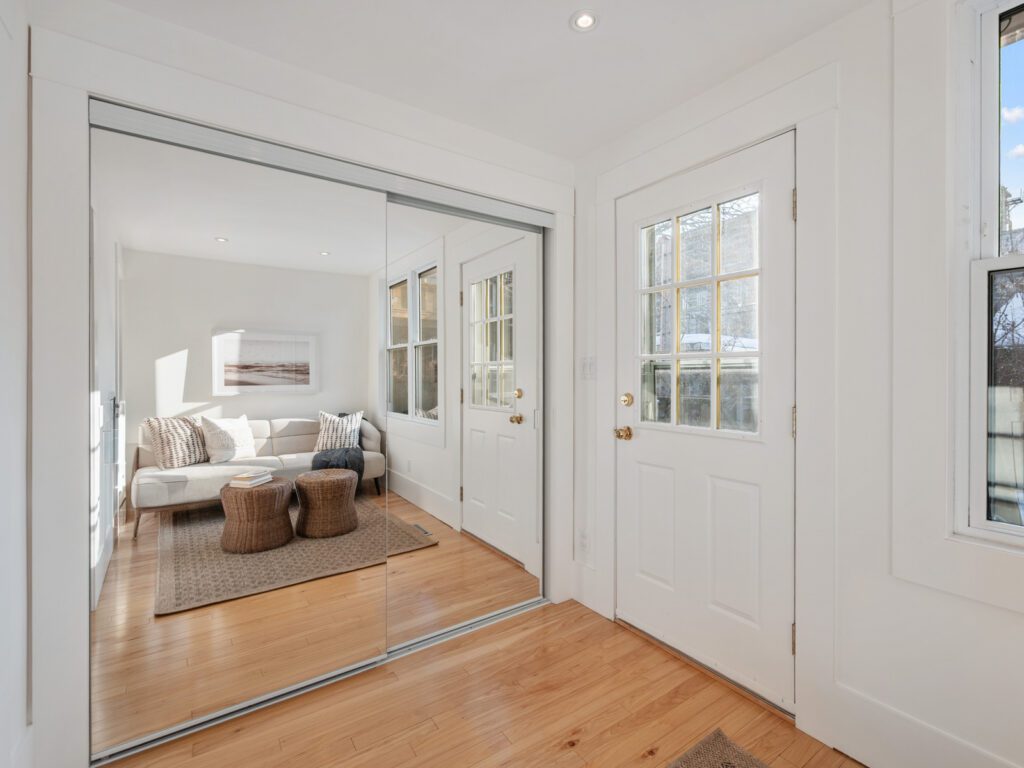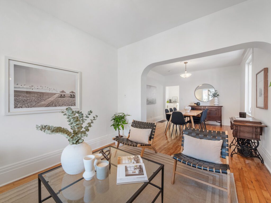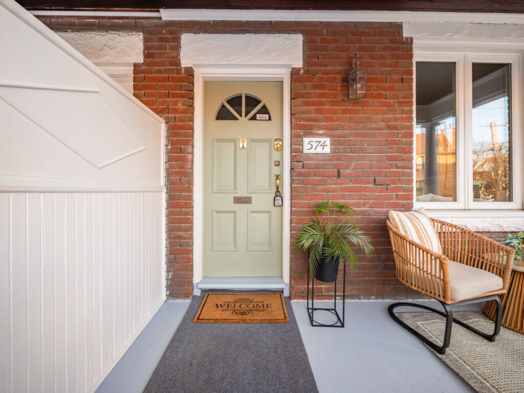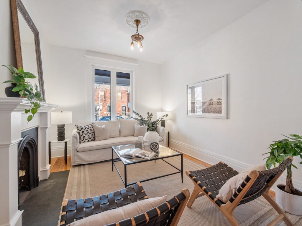 this bright and inviting home has beautifully restored floors, soaring 9′ ceilings, impressive 10′ baseboards, and an elegant stained-glass