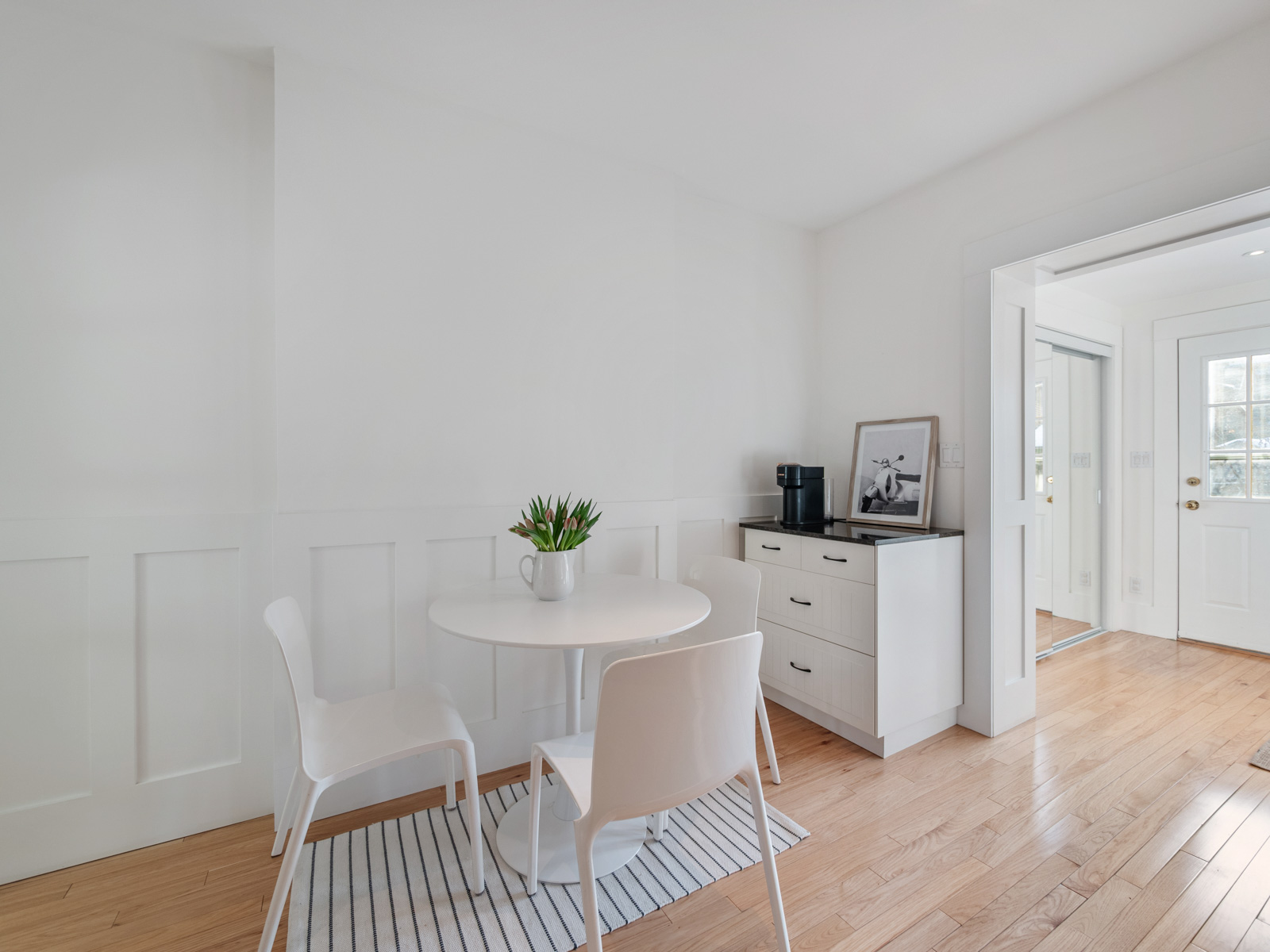Spacious eat in kitchen is perfect for weeknight dinners, while the light-filled sunroom glowing in late afternoon and evening sun is ideal as a