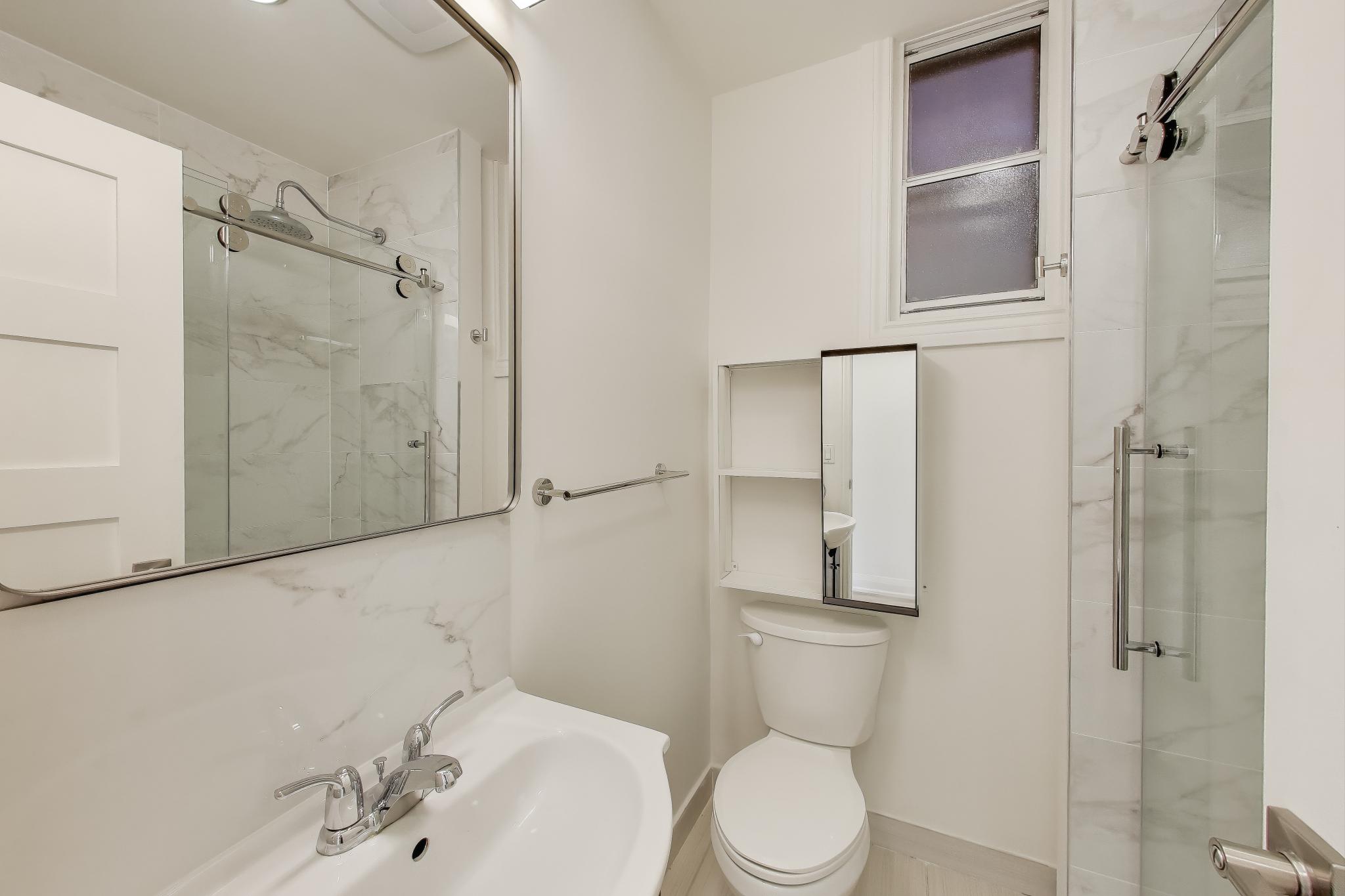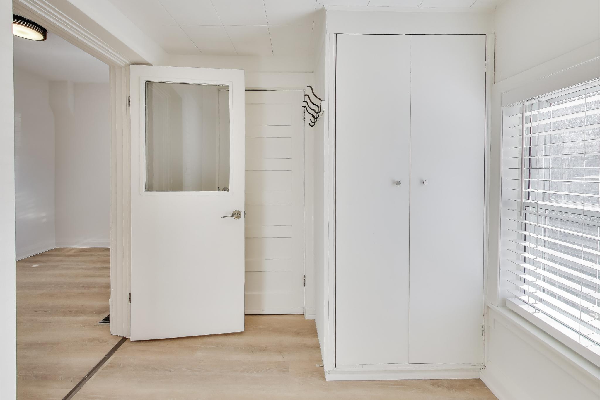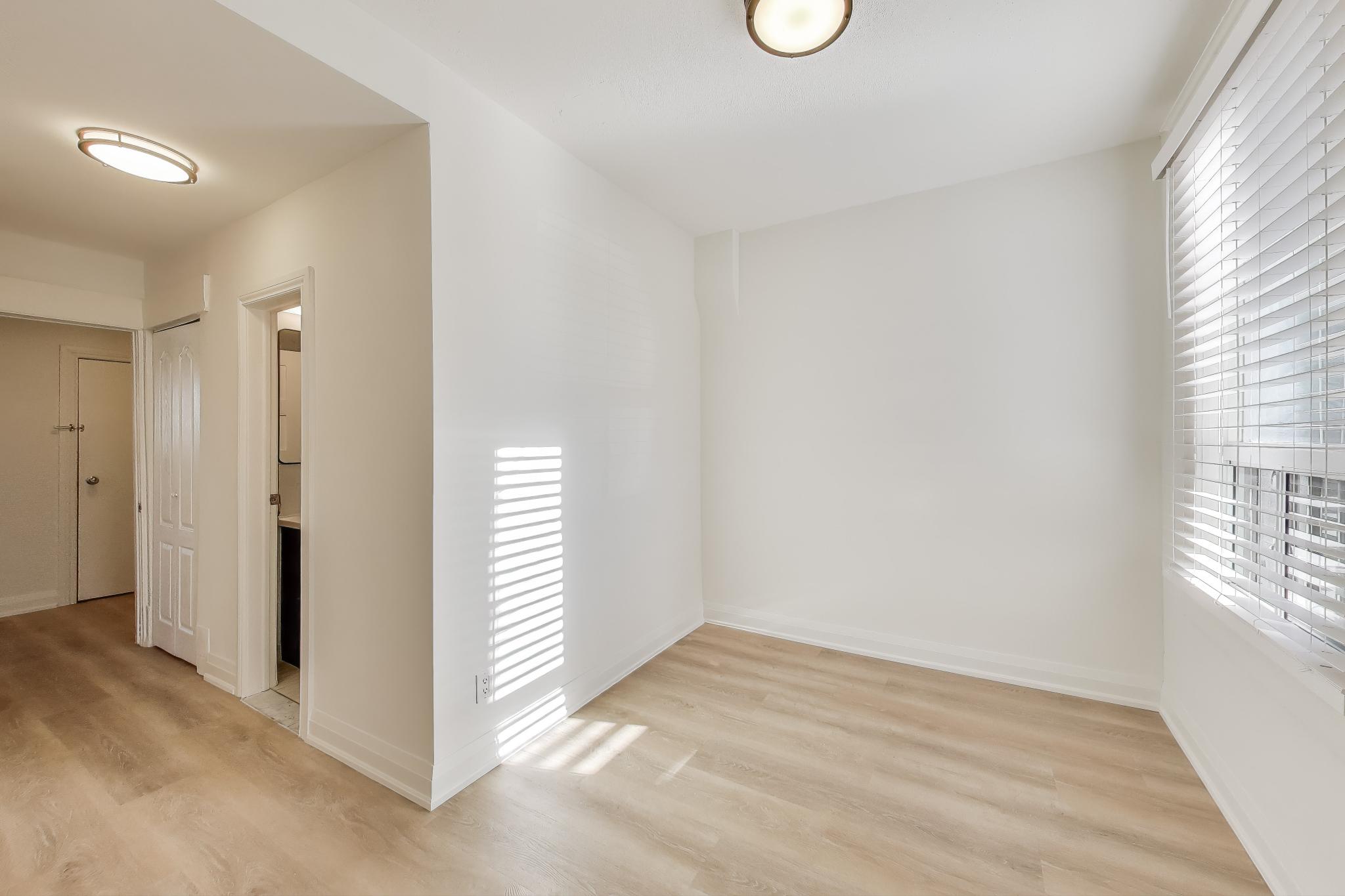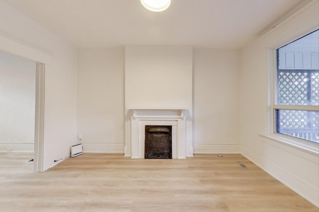 Bright and modern main-floor unit offering nearly 700 sq. ft. of comfortable living space with both front and rear access. Recently updated throughout, this unit has recently been painted and brand new flooring installed. The living room features an ornamental fireplace and oversized window overlooking the front yard. The upgraded eat-in kitchen includes new cabinetry, full-sized stainless steel appliances, including a dishwasher, making daily living a breeze. The bedroom at the rear comes with and a fully renovated bathroom ensuite with a walk-in shower. The flexible 1+1 layout provides an extra room that works perfectly as a home office, nursery, or den. Enjoy the convenience of one parking space and shared on-site laundry (coin-operated washer, dryer is free).